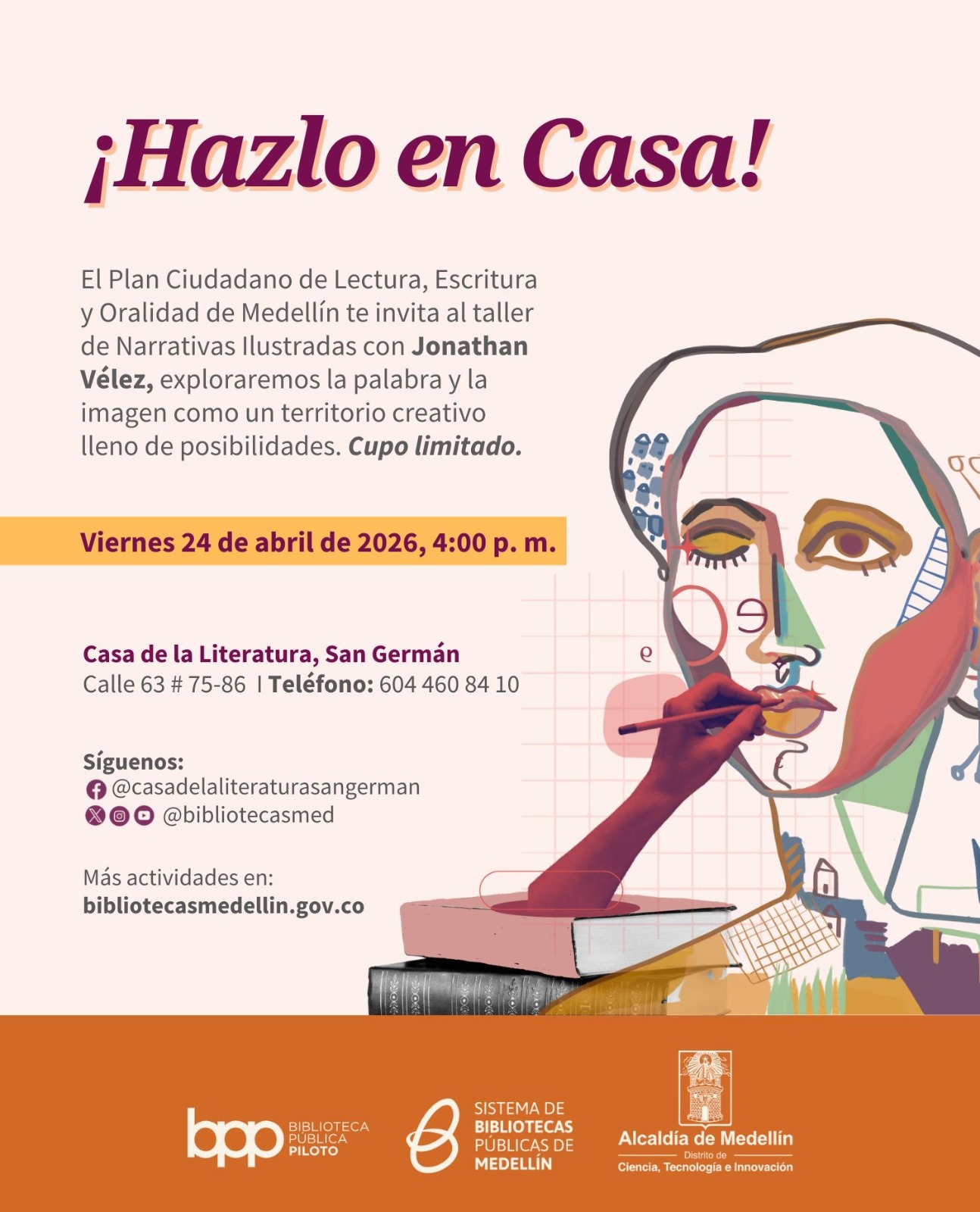 El viernes 24 de abril iniciaremos el primer ciclo de talleres Hazlo en Casa del año, pensado para quienes desean acercarse a la lectura, la escritura y la oralidad desde distintas disciplinas artísticas. Esta edición recorre las narrativas gráficas, el teatro y el cine. En el primer taller, a cargo del artista Jonathan Vélez, los participantes crearán su propio cómic a partir de una historia cotidiana. Esta es una actividad es gratuita con cupos limitados.