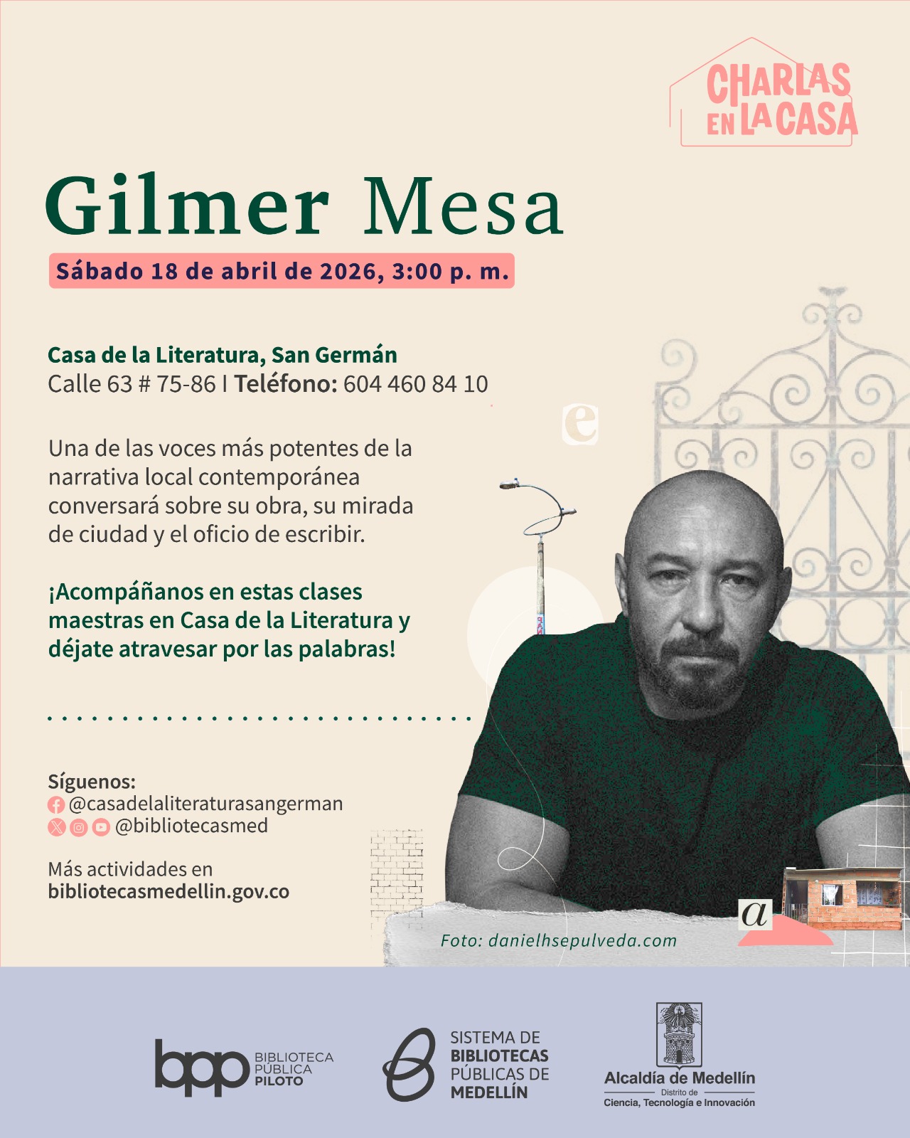 Abrimos la semana con la Clase Maestra del escritor Gilmer Mesa, el 18 de abril, en la Casa de la Literatura San Germán, un encuentro cercano para explorar las narrativas del yo, con el autor de La cuadra, Aranjuez, Travesías y Los espantos de mamá.