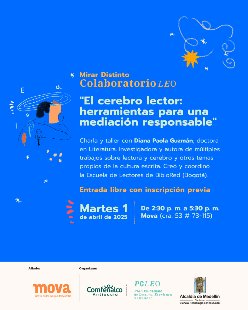 El 1 de abril tendremos el primer encuentro del Colaboratorio LEO. Los invitamos a inscribirse y a participar en la charla y taller: El Cerebro Lector: herramientas para una mediación responsable, con la investigadora y escritora Diana Paola Guzmán.